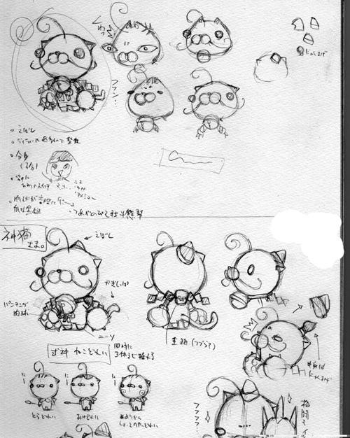 烏帽子をかぶっていたり、耳が小さかったりひげが長かったりしています。