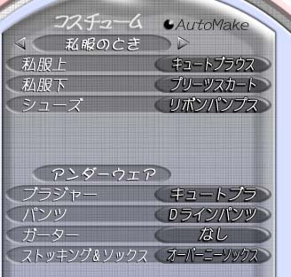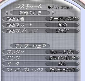 それから、今回エディットできるのはヒロインのボディーパーツだけではありません。なんと、ヒロインが日常着る衣服の組み合わせもエディットできます。