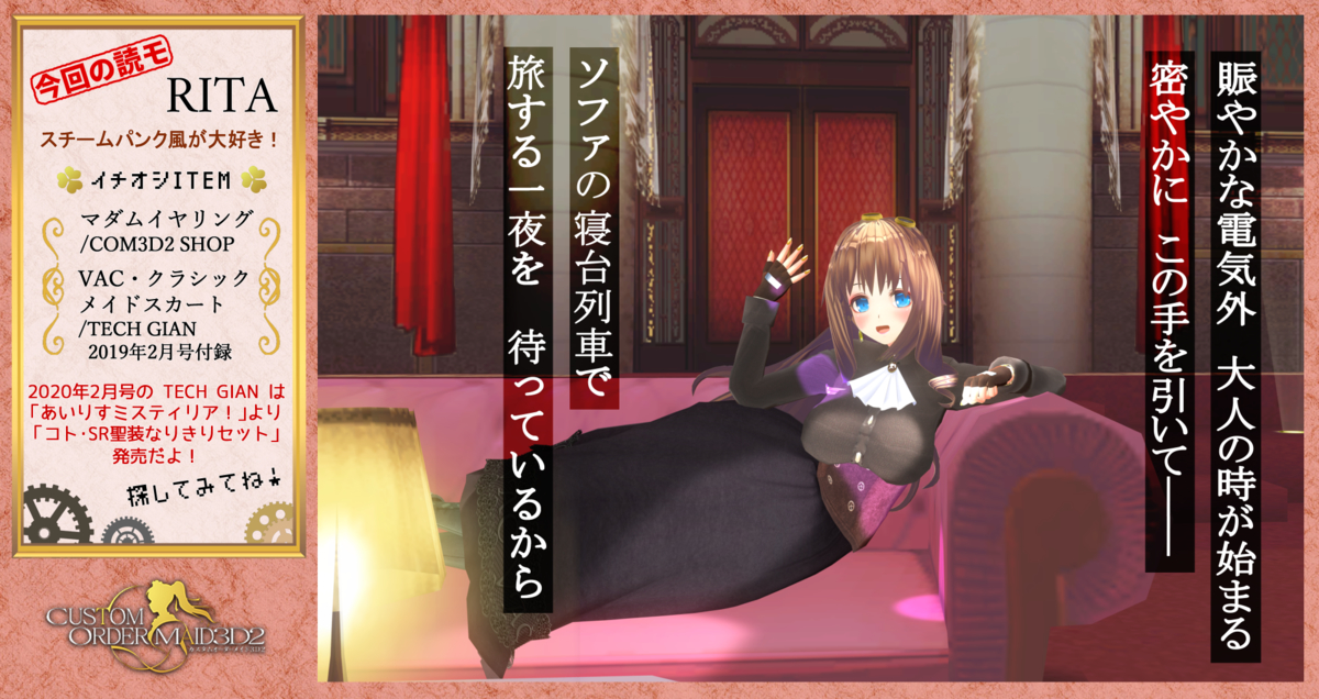 | 2020年02月26日 | キャラクターパック 甘々デレデレでご主人様を信仰している妹系幼馴染情報+COM3D2二周年記念Hイベントのお知らせ! |