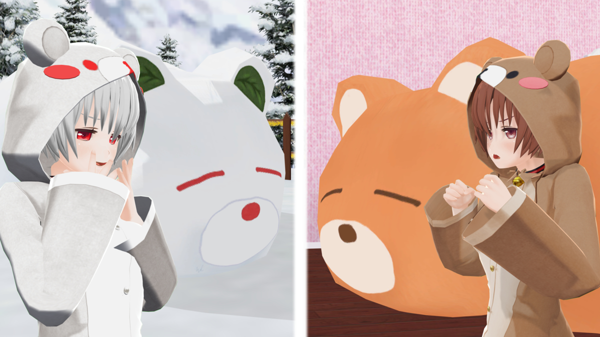 険しい雪の世界で生き残った雪くま親分と暖かい部屋で過ごしてきたくま親分。
