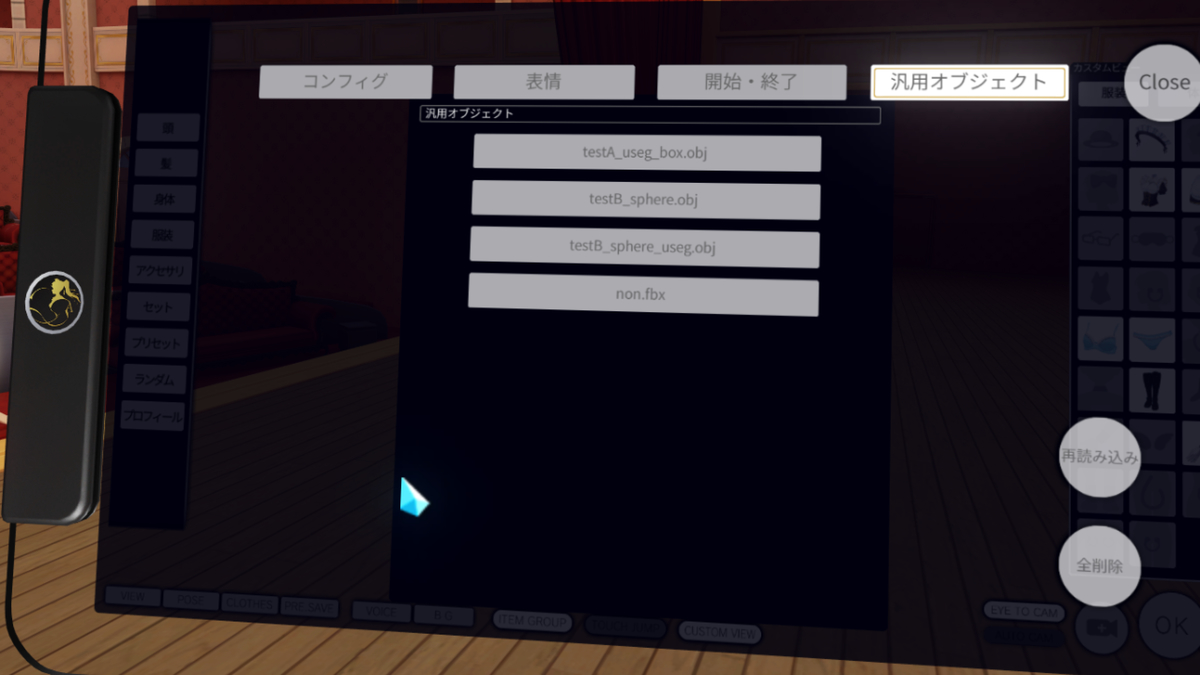 で、VAスタジオ中に汎用のモデルファイルを読み込むがことができるようになりました。