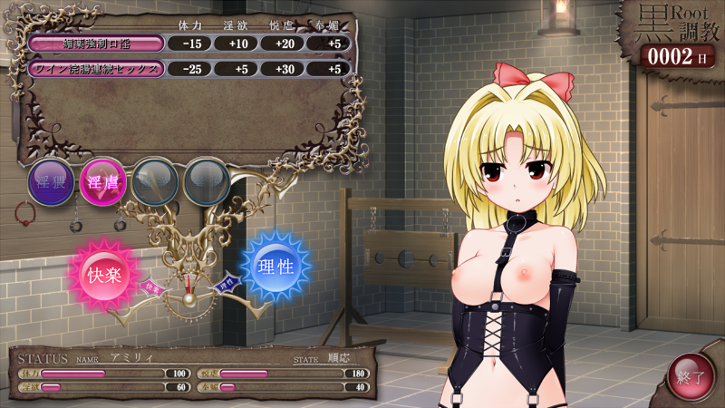 調教ではこのように『淫猥』『淫虐』『奉悦』『誓約』と言う4つの項目がございます。